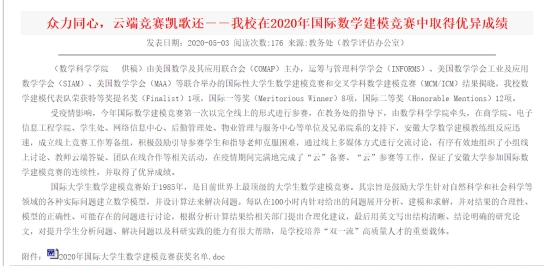 3、组织学生参加课外数学建模比赛。