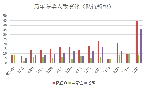 经过数据分析,从1997年至今,数学建模参赛规模不断扩大,获奖队伍人数不断增加。同时,研究生数学建模和国际数学建模比赛的获奖人数也呈逐年递增。