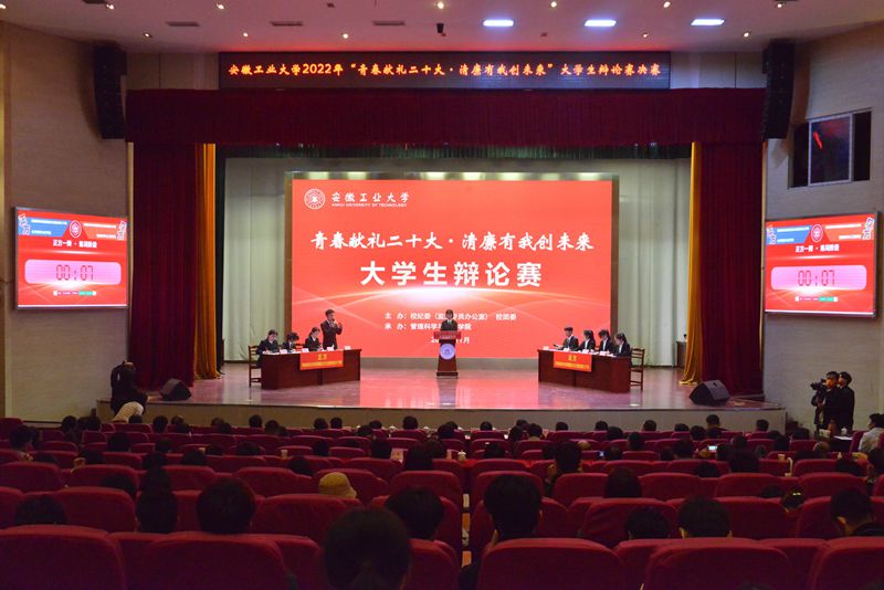 我校2022年“青春献礼二十大,清廉有我创未来”大学生辩论赛决赛在秀山校区新大学生活动中心隆重举行。校党委书记陆林,校纪委书记、监察专员潘淑琴到场指导,党办校办、纪委办、组织部、宣传部、巡察办、学工部、团委等部门负责人担任评委,校纪委委员,各学院党委书记、纪委书记、纪委委员、分团委书记,师生代表300余人观看比赛。
