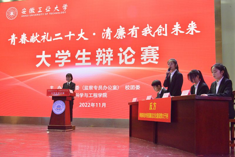 大学生廉洁主题辩论赛作为我校廉洁文化进校园的品牌项目,是我校正在开展的“严监督、重预防、转作风、强队伍”专项整治行动中“四个一”重要活动之一,旨在深入学习宣传贯彻党的二十大精神和习近平总书记关于青年工作、全面从严治党的重要论述,落实中共中央办公厅《关于加强新时代廉洁文化建设的意见》要求和校党委《2022年党风廉政建设工作要点》的重要部署,积极引导青年大学生扣好“清廉人生”第一粒扣子。(撰稿:万媛媛 刘瑜 审核:赵颖 王菁 叶凤华 张苒 杜飞)