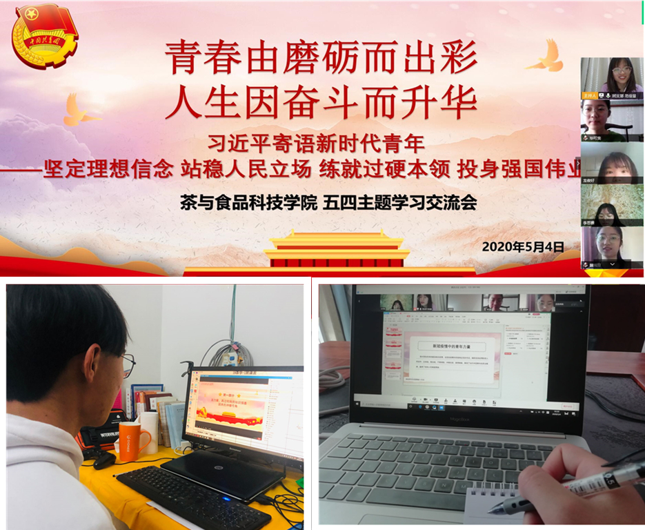 殷殷嘱托记心间,青春建功新时代。青春由磨砺而出彩,人生因奋斗而升华,五四前夕习近平总书记寄语新时代青年“坚定理想信念、站稳人民立场、练就过硬本领、投身强国伟业”,学院迅速掀起了学习习近平总书记寄语新时代青年的热潮,团员青年们谈认识、谈体会、谈心得。2018级茶学专业的毕可奕表示:“作为当代青年,我们要与时代同步伐、与祖国共命运、与人民齐奋斗,才能拥有壮丽的青春,才能实现人生的美好理想。我们要有‘问苍茫大地,谁主沉浮’的豪情,用满腔热血投身到祖国的建设中去。”同时,2017级食品质量与安全专业团支部、2018级食品卫生与营养学、神农茶协会等多个团支部通过“云课堂”专题学习了习近平总书记给北京大学援鄂医疗队全体90后党员的回信精神、战“疫”中的中国制度与中国精神。年轮有更替,惟担当精神不灭,这场震撼心灵的精神洗礼,更加坚定了广大青年到祖国需要的地方去,主动担当起历史使命和政治责任,在时代风雨中经受考验,在艰难磨砺中成长成才,为祖国的发展贡献青春力量。