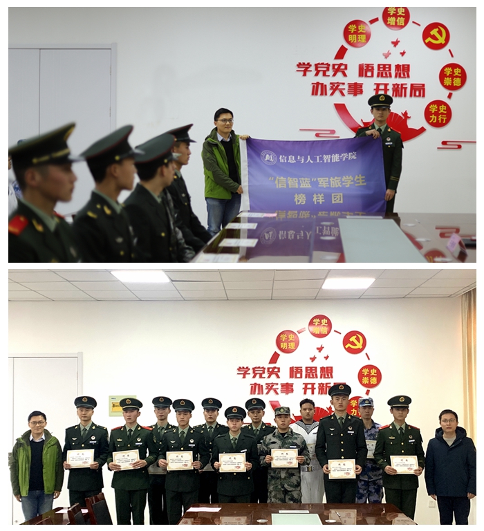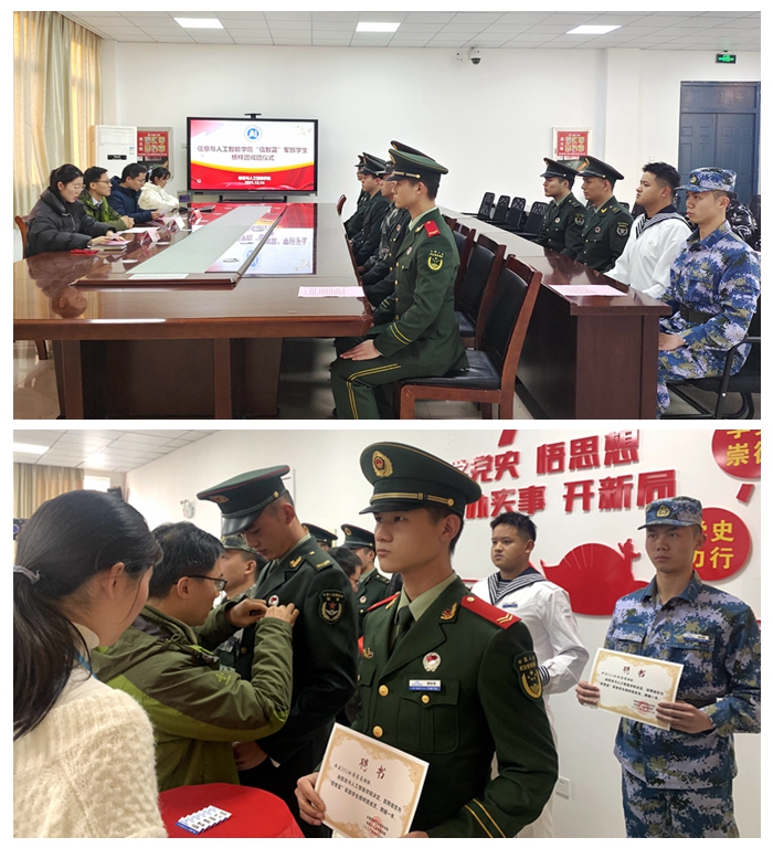 为深入贯彻落实习近平总书记关于退役军人工作的重要论述,引导退伍学生传承军队优良作风,在班风学风建设、思想政治引领、志愿服务、国防动员等活动中有效发挥榜样效能,12月14日,信息与人工智能学院举办“信智蓝”军旅学生榜样团成团仪式。学院党总支书记郑晓明,党总支副书记、副院长周正贵出席活动。