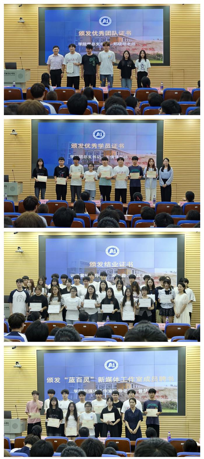 信息与人工智能学院“蓝百灵”新媒体训练营第一期培训圆满结束,但对于“蓝百灵”新媒体工作室的每一个成员而言,这并不是终点,而是一个新的起点。学员们纷纷表示在今后的学习和工作中,他们将以更加饱满的热情和更加扎实的专业技能,继续弘扬主旋律,传播正能量,深化新媒体阵地的育人功能,讲好新时代学子的奋斗故事。此次活动的顺利举办,展示了学院“三全育人”工作着力构建直达青年、活跃有序的育人新媒体阵地的决心,也是学院党总支持续推动新媒体创新融合发展,构建有鲜明特色的网络思想引领工作机制的积极探索。