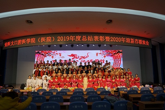金猪辞旧岁,瑞鼠闹新春。2020年1月5日下午,安徽医科大学口腔医学院(附属口腔医院)举办2019年度总结表彰暨2020年迎新春联欢会,现场暖意融融,一派欢乐吉祥的景象。院党委书记王润玲、院长何家才及领导班子成员,同我院老领导、老专家、老同志及教职医护员工300余人汇聚一堂,共度欢乐时光。院直教工党支部全体党员参与了活动,原党支部书记张黎老师、支委成员罗菲菲等人系活动总策划。