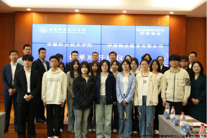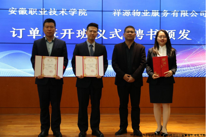 安徽祥源物业服务有限公司副总经理刘通对院领导、师生表示热烈欢迎,对订单班开班表示热烈祝贺,对安徽职业技术学院祥源物业“智慧物业产业学院”成立以来校企双方在人才培养、行业需求、师资互派等方面的工作予以高度认可,对订单班的全体同学提出了“全身心投入,积极转变角色,努力成为企业的出色员工”的要求。