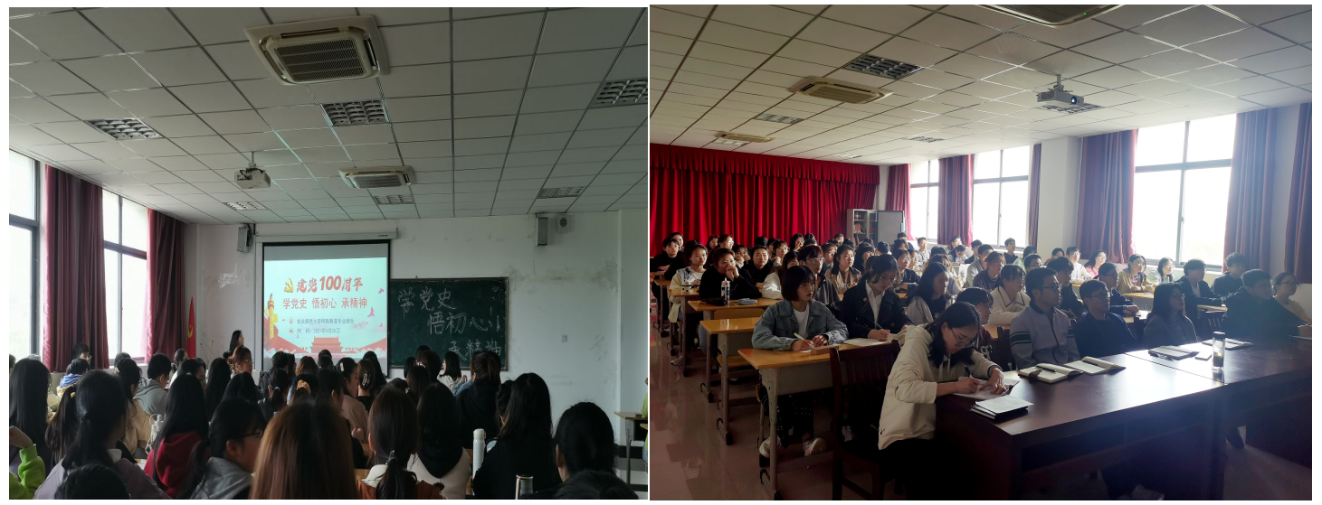 4月25日中午教工特殊教育教研室党支部组织特殊教育专业全体师生在J305开展“学党史,悟初心,承精神”党史学习教育活动。师生共同观看红色党史纪录片《他们与天地永存》,重温先烈们的峥嵘革命史。活动由2019级团支部书记杨紫琼主持。