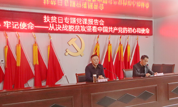 10月15日,在第7个国家扶贫日、第28个“国际消除贫困日”来临之际,校长闵永新赴我校定点帮扶单位太湖县天华镇西冲村,为定点帮扶村党员群众送去题为《不忘初心 牢记使命——从决战脱贫攻坚看中国共产党的初心和使命》的专题党课报告。