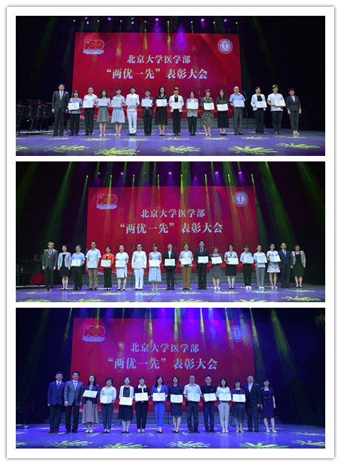 基础医学院王平章等123位同志荣获“北京大学医学部优秀共产党员”荣誉称号;第一医院李楠等18位同志荣获“北京大学医学部优秀党务工作者”荣誉称号;护理学院本科生党支部等49个党组织荣获“北京大学医学部先进党组织”荣誉称号。