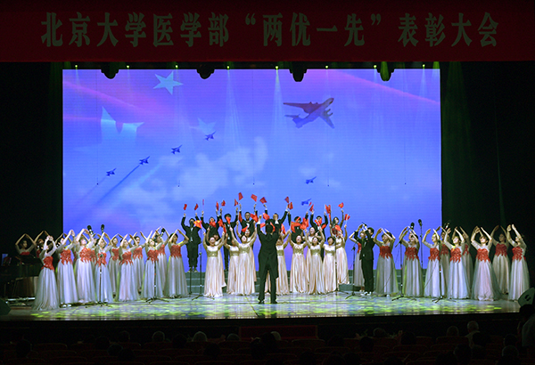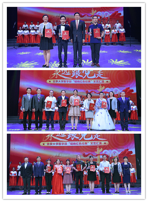 6月26日,在全党全国上下深入开展党史学习教育、中国共产党即将迎来百年华诞的喜庆时刻,北京大学医学部召开“两优一先”表彰大会,并举办“永远跟党走——唱响红色经典”文艺汇演。