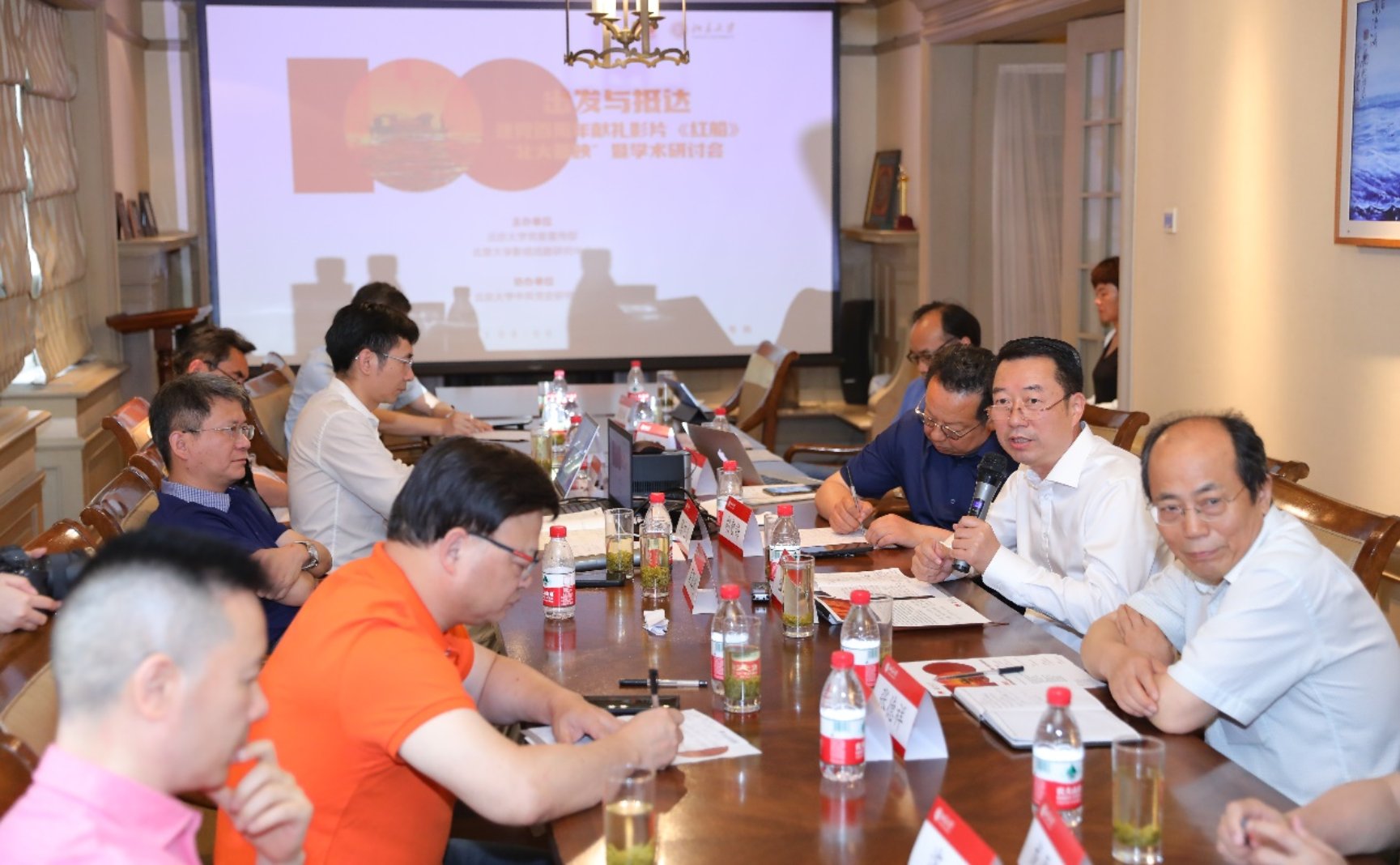 7月11日上午,建党百周年献礼影片《红船》学术研讨会在北京大学燕南园51号举行。此次活动由北京大学党委宣传部、北京大学影视戏剧研究中心主办,北京大学中共党史研究中心协办。中国电影家协会分党组书记张宏,中国文艺评论家协会副主席张德祥,北京电影学院副书记、副校长胡智锋,中国电影评论学会常务副会长张卫,著名编剧龙平平,中国艺术研究院影视所副所长赵卫防,北京电影学院研究生院院长王海洲,北大新闻传播学院院长陆绍阳,北大艺术学院副院长李道新,北大马克思主义学院程美东,北大党委宣传部常务副部长唐金楠,北大影视戏剧研究中心主任陈旭光等电影学者和党史专家,以及《红船》主创方的编剧黄亚洲、总策划郑重、制片人叶进军、导演沈东、王德庆、出品人潘新伟等出席。主创团队与专家学者在对话交流中重温党史,解读中国共产党的百年历史起点和伟大征程。
