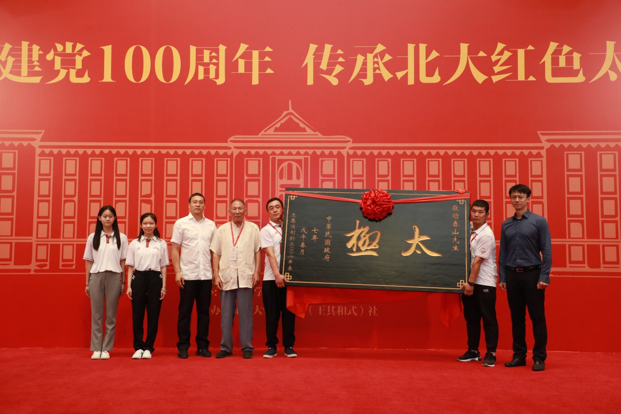 邢台矿务局纪委原副书记、王其和之孙王志恩向北京大学王其和太极拳社赠送“太极”匾额。