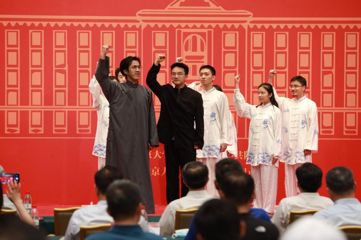 由北京联合大学艺术学院表演系和北京大学王其和太极拳社同学共同演出的情景剧《李大钊与曹绶华》,将本次会议推向了高潮。当同学们齐声呐喊“民族兴亡、匹夫有责”时,全场观众都深受震撼。同学们精彩的表演,生动地诠释和追溯了革命先烈振兴中华的精神,表达了传承红色太极的信心、决心。