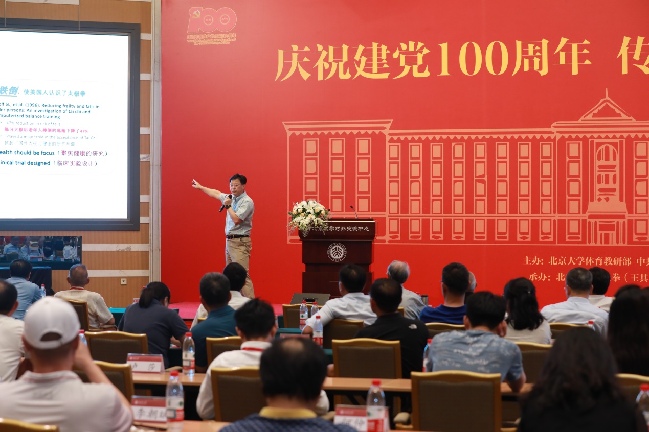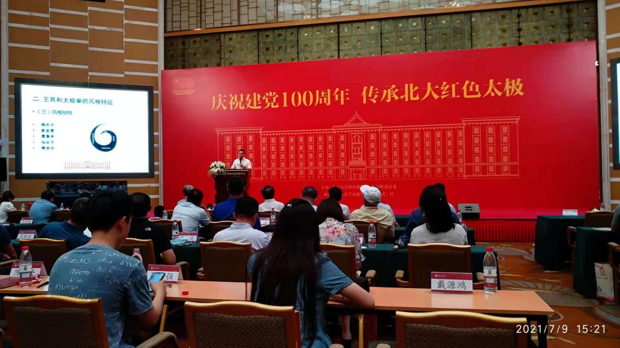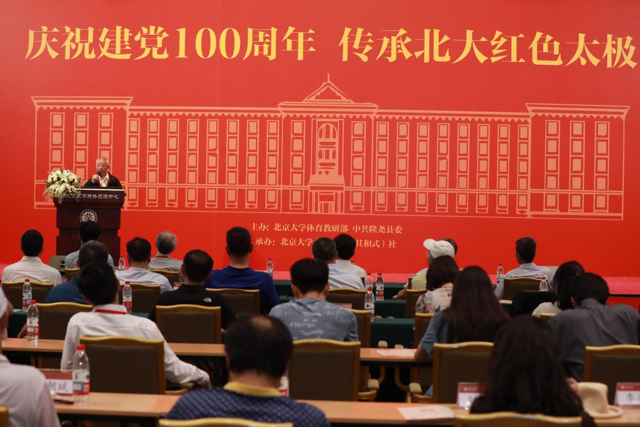 2021年7月9日下午,“庆祝建党100周年 传承北大红色太极”研讨会在北京大学英杰交流中心阳光厅举行。本次活动由北京大学体育教研部与中共隆尧县委联合主办,北京大学王其和太极拳社承办。来自北京大学、国家体育总局、北京市文化和旅游局、北京市武术运动协会、中共隆尧县委、海淀区文化馆、北京师范大学、首都体育学院、北京体育大学、天津体育学院、河北体育学院等单位的80余位专家,以及革命英烈后人、王其和后人参加了此次会议。北京大学党委副书记安钰峰、北京市文化和旅游局二级巡视员常林出席此次会议。会议由北京大学前沿交叉学科研究院博士生高子晴主持。