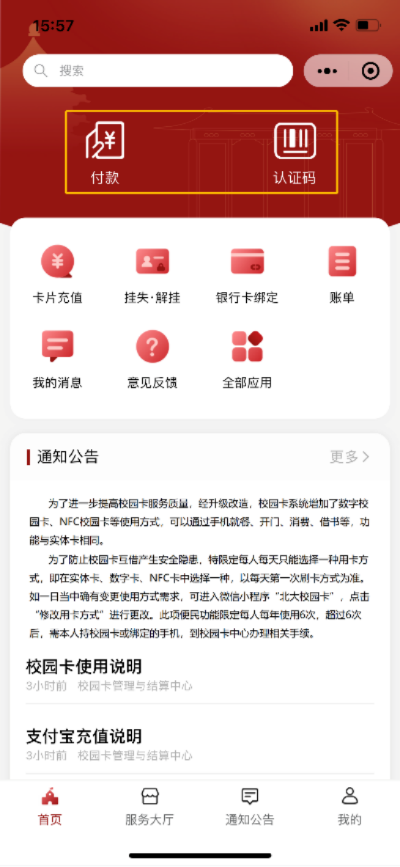 为了进一步方便全校师生的校园生活,2021年9月1日,学校正式推出了数字校园卡服务。师生只需一部手机即可实现门禁、就餐、消费、图书借阅等校园卡功能,无卡畅游北大的智慧校园生活成为了现实。不仅提升了广大师生的便利感、获得感,更切实地解决了实体卡片携带不便、易于丢失、挂失不及时等难点痛点。