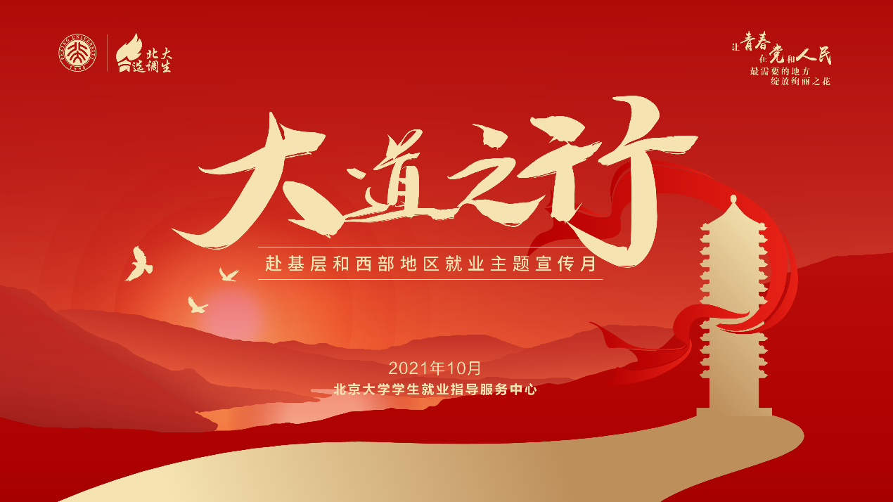 为深入贯彻落实习近平总书记在中央人才工作会议上的重要讲话精神,引导青年深怀爱国之心、砥砺报国之志,主动担负起时代赋予的使命责任,继“大国重器”国防军工绿色主题月后,学生就业指导服务中心于10月举办第二届“大道之行”赴基层和西部地区就业主题月。
