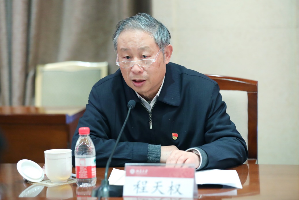 程天权希望北大党委按照中央要求,认真总结这次党史学习教育的成功经验,持续深入发掘校史资源,不断加强理论创新,紧紧围绕立德树人根本任务,把党史学习教育的成果转化为学校教学、科研、社会服务等各项事业发展的动力。