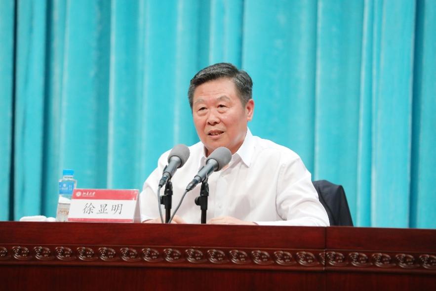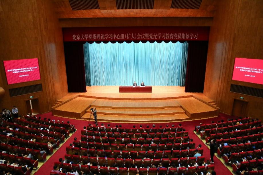 为深入学习贯彻习近平新时代中国特色社会主义思想、贯彻党纪学习教育要求,5月31日下午,北京大学在百周年纪念讲堂观众厅召开党委理论学习中心组(扩大)会议暨党纪学习教育党员集体学习,邀请最高人民检察院原副检察长,十三届全国人大常委会委员、全国人大监察和司法委员会副主任委员,中国法学会副会长徐显明为全校师生党员讲授专题党课。教育部高校党建工作联络员、清华大学党委原副书记、纪委书记韩景阳,北京大学党委书记郝平、校长龚旗煌等校领导班子成员出席。会议由郝平主持。