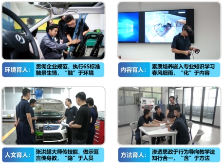 因事而化,点线面结合,校企组建结构化教学团队,深挖课程中蕴含的思政元素,建设汽车专业群课程思政资源库,从课程特点出发,整体打造教学方案。
