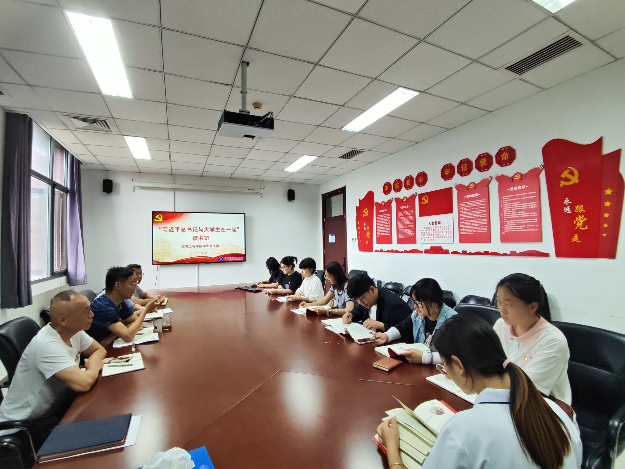 7月4日,生物工程学院学生党支部在生物楼426举行了习近平总书记与大学生在一起”读书班,深入学习贯彻习近平新时代中国特色社会主义思想,扎实推进“学习二十大 永远跟党走 奋进新征程”主题教育实践活动。生物工程学院党总支副书记刘青山,学生党支部书记寇明刚以及全体支部党员参加本次活动。