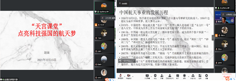 赵晨老师做了题为““天宫课堂”——点亮科技强国的航天梦”报告,并介绍了神舟十三号飞船任务及我国空间站的发展历程。天宫授课得以成功开展,展现了国家致力于推动科技进步的宏大抱负。我国正加快建设科技强国,实现高水平科技自立自强。无论是加强原创性、引领性科技攻关,坚决打赢关键核心技术攻坚战,还是强化国家战略科技力量,提升国家创新体系整体效能,乃至把发展科技第一生产力、培养人才第一资源、增强创新第一动力更好结合起来,都离不开人才支撑。 “科技立则民族立,科技强则国家强。”点亮理想,共同奔赴星辰大海,中国航天将拥有更斑斓的明天。