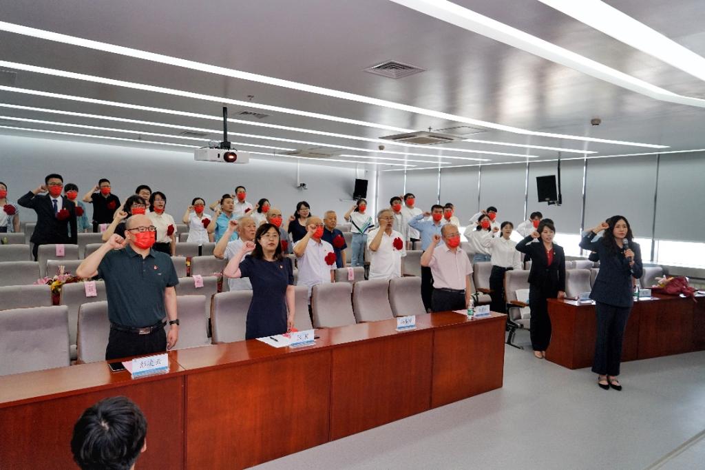 学部党委书记高春娣带领与会全体同志重温入党誓词,随后,全体同志齐声高唱《没有共产党就没有新中国》,用激情高昂的歌声歌颂党的百年伟大征程。