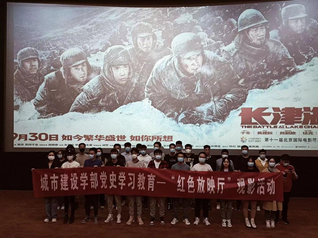 根据城市建设学部党史学习教育有关部署,10月13日下午,学部党委组织师生党员、统战人士近600人在东都影城观看爱国主义电影《长津湖》。
