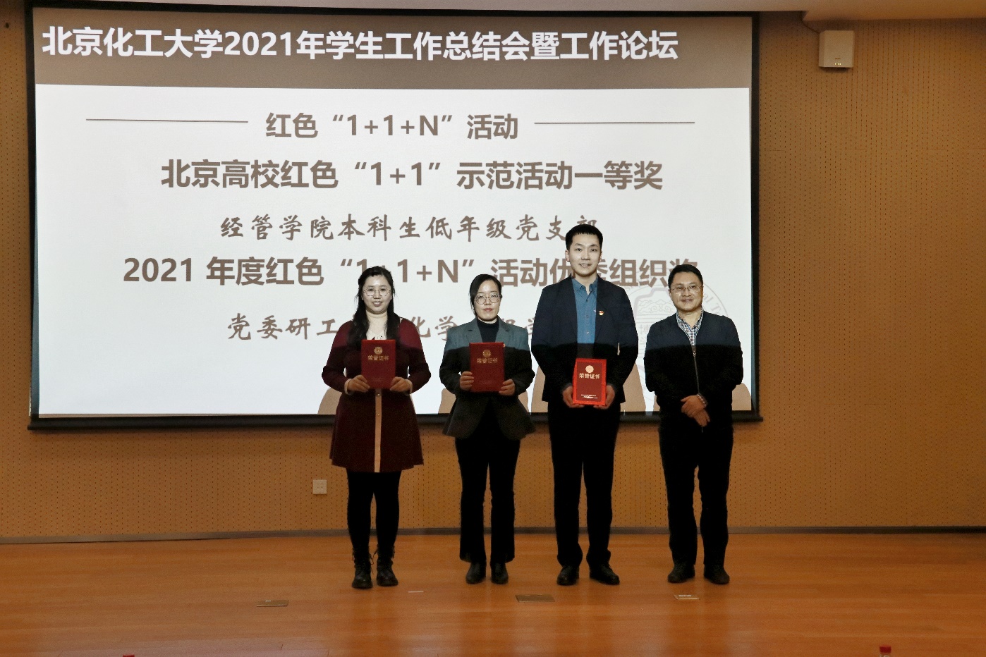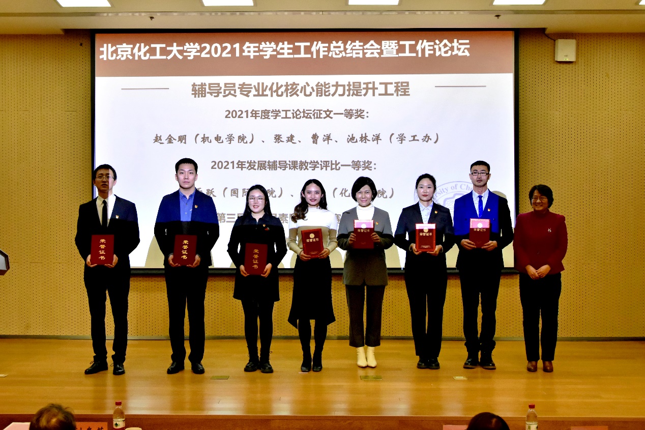 与会领导分别为2017-2021年度北京高校十佳辅导员、优秀辅导员、优秀德育工作者,2021年度红色“1+1+N”示范活动、“院周”活动先进集体、学生资助工作绩效考核前三名、学业发展辅导中心建设工作考核优秀学院、发展辅导课教学评比、第三届辅导员素质能力大赛、学工论坛征文获奖个人和集体颁奖。