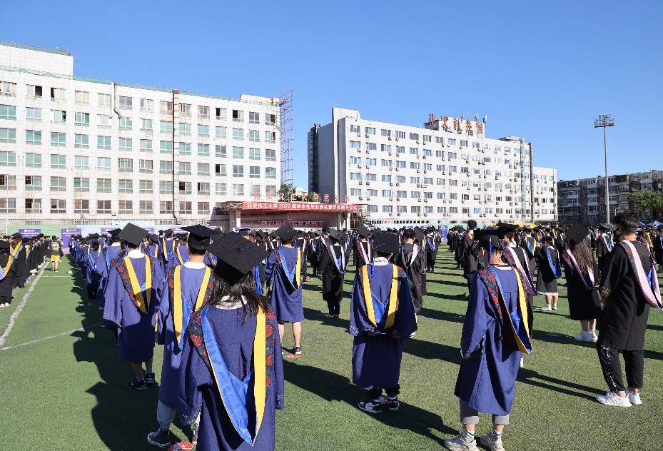 6月5日上午,薄云晴日、晨光万缕,我校隆重举行2022届毕业生毕业典礼暨学位授予仪式。毕业典礼以线上线下相结合的方式举行,线下主会场设在东校区运动场。全体校领导,各院系及相关部处负责人、毕业班辅导员、班主任以及全体2022届毕业生参加毕业典礼。毕业典礼由校党委副书记宋来新主持。