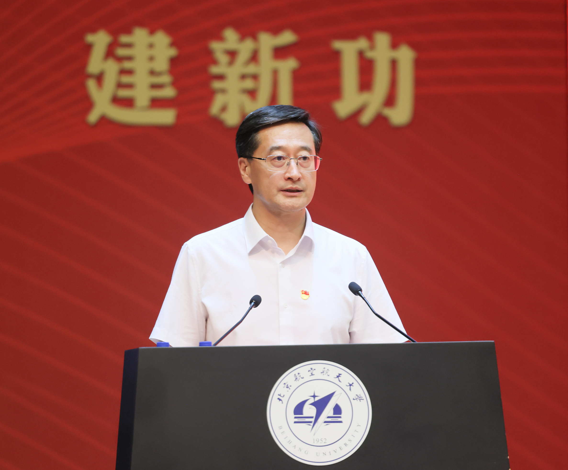 王云鹏表示,全校各级党组织和广大党员要以受到表彰的优秀个人和先进集体为榜样,深入学习贯彻习近平新时代中国特色社会主义思想,牢固树立“四个意识”,不断增强“四个自信”,坚决做到“两个维护”,推动学校各项事业高质量内涵式发展,加快建设中国特色、世界一流大学,为全面建设社会主义现代化强国、以中国式现代化全面推进中华民族伟大复兴,贡献新时代的北航力量。