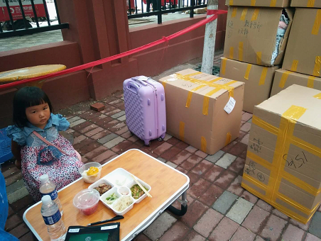 杨小敏老师带着女儿一起为学部同学看行李、邮寄