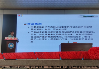 讲座1:2024522日上午,心理学院联合党支部书记张国礼老师在山西代县中学针对高三年级学生开展了主题为“考试焦虑,我要欢迎你”的心理健康科普讲座。首先,张国礼老师从心理学的角度向学生介绍了考试焦虑是高三学生临近高考时的正常心理体验,不要过度“魔化”考试焦虑,且适度考试焦虑可以带来积极作用,是一次迎接挑战、自我成长的机会。其次,张老师介绍了考前焦虑情绪调节的一些具体方法,如表情调节、呼吸调节、暗示调节、身体活动调节等。通过此次心理健康科普讲座,有效地缓解了高三学生面临的考试焦虑,增强学生的考试信心,助力高三学生在高考中取得理想成绩。
