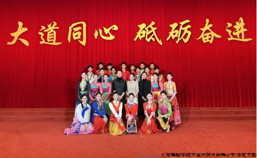北京舞蹈学院曾多次受邀参加全国政协新年茶话会文艺演出。今年,学院再次应全国政协、国家文化和旅游部邀请,中国民族民间系副主任靳苗苗与支部党员教师张天阳、党员教师高岩带领中国民族民间舞系23名学生,圆满完成舞蹈《同心圆》排演任务,在共迎新春之际,用实际行动践行“为人民而舞,为时代建功”的新时代北舞精神。