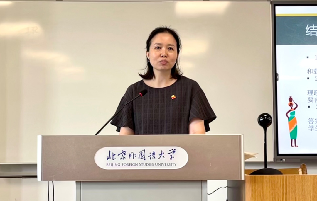 非洲学院资深教师魏媛媛博士,结合两次“三进”项目经历,围绕“建设内容”和“建设目标”等方面重点介绍了其在课程思政上做的积极探索,并分享了斯瓦希里语笔译和精读课型的课程思政点,从学生反馈的角度强调了课程思政对于学生素质能力培养的重要意义。