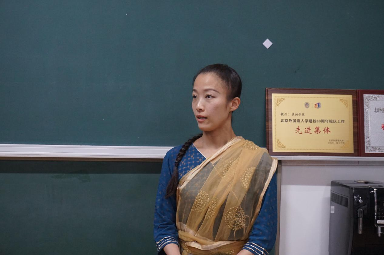 许书记提到,很高兴能请到国内最高水平的印度古典舞教师于菲菲老师来北外授课。这是亚洲学院、非洲学院自2021年“青春心向党”合唱比赛以来第二次与于老师展开合作。希望来自不同亚洲语言专业的老师同学能够在学习过程中体会到南亚文化的独特魅力。