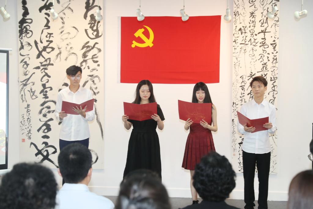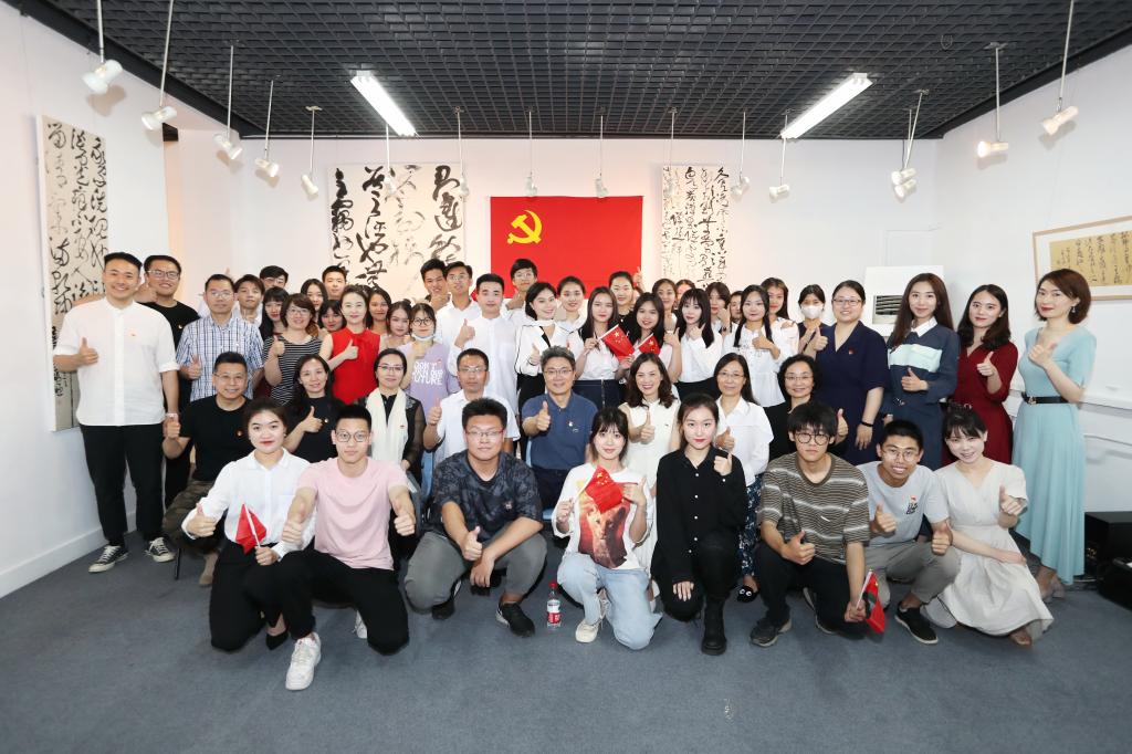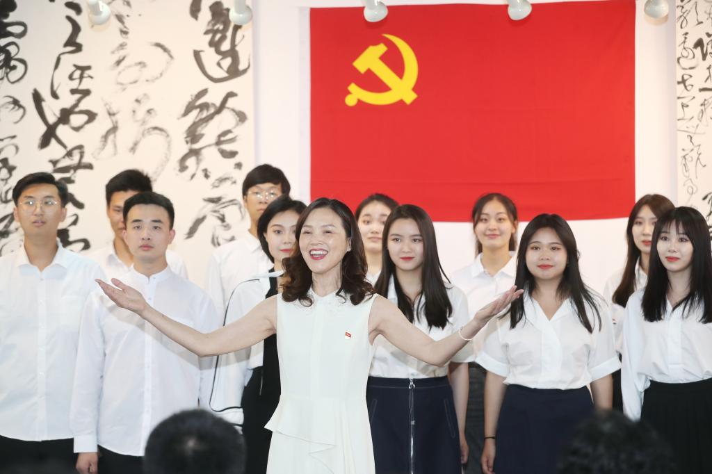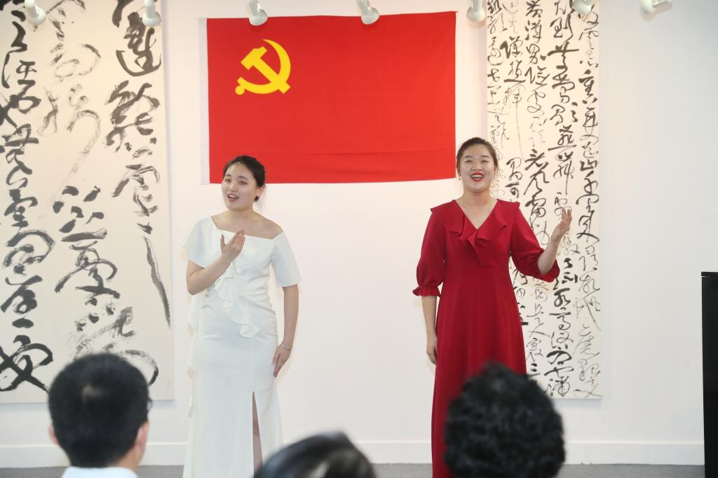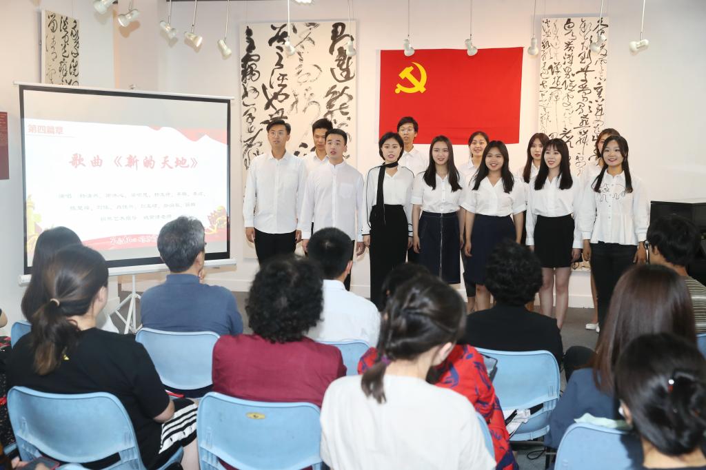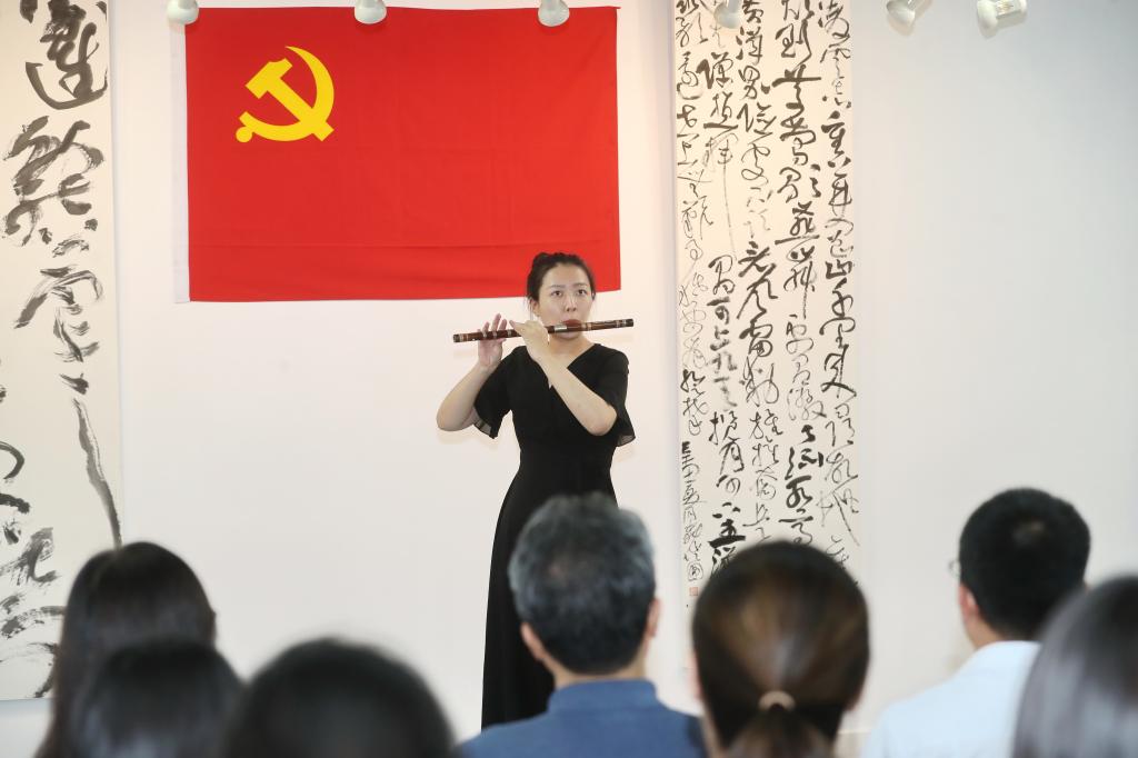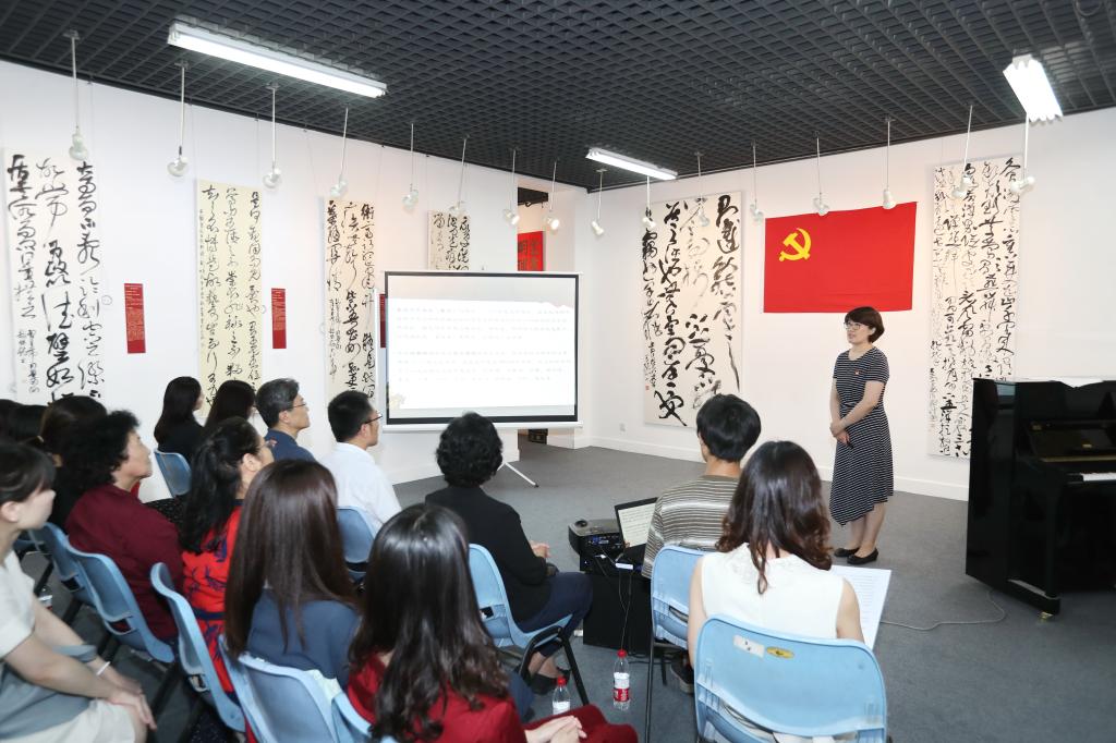 百年征程波澜壮阔初心不变,百年文艺讴歌时代万紫千红。为庆祝中国共产党成立100周年,北京语言大学艺术学院于6月11日在艺术展厅开展了一堂别出心裁、有“声”有“色”的党史学习专题艺术党课。艺术学院党员师生作为党课讲述人和表演者,以歌曲演唱、经典画作赏析、器乐演奏、书法作品创作与赏析、诗朗诵等多种艺术形式重温党史百年、回望红色足迹,激励师生迈向新征程、奋进新时代。教育部党史学习教育高校第三巡回指导组王志新莅临指导,北京语言大学副校长张宝钧,党委常委、统战部部长吕静,党委教师工作部副部长赵璞,马克思主义学院院长丁文阁以及相关职能部门负责人出席活动。艺术学院师生80余人参加党课。