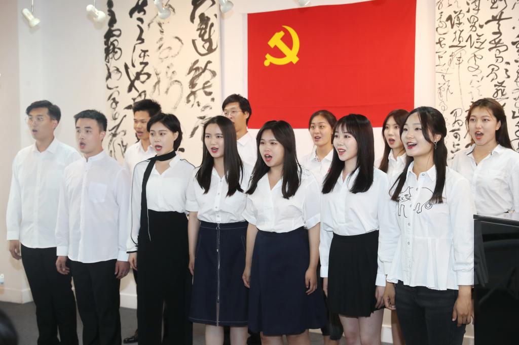 党课接近尾声,师生合唱《没有共产党就没有新中国》,用朴实的旋律、滚烫的情感唱出了只有中国共产党才能领导中国人民争取国家独立、民族解放、人民幸福的历史必然。歌曲如旗帜,似号角,坚定着人民跟党走的信念,鼓舞和激励着几代中国人民在中国共产党的旗帜下奋勇前进。