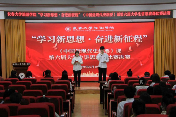 为深入贯彻落实习近平总书记关于“大思政课”建设的重要指示精神,充分发挥高校思政课立德树人关键课程作用,坚持不懈用习近平新时代中国特色社会主义思想铸魂育人,推动党的创新理论走进青年大学生,学校马克思主义学院联合校团委举办“学习新思想·奋进新征程”《中国近现代史纲要》课程第六届大学生讲思政课比赛。决赛于6月12日下午在筑梦报告厅举行。教务处教务科科长曹哲、校团委老师于凯、马克思主义学院思想政治教育教研室全体教师担任评委。