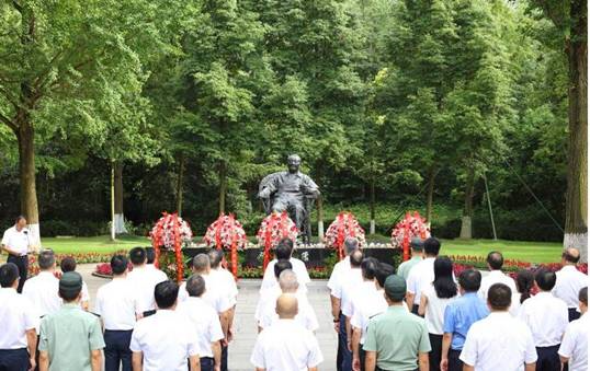 8月21日上午,重庆市文化和旅游发展委员会、重庆黑山谷景区、重庆金佛山景区、重庆统景温泉风景区、重庆两江影视城、重庆图书馆、重庆师范大学、成都体育学院、成都工业学院、中国移动广安分公司、广安职业技术学院等单位的干部员工怀着无限崇敬和怀念之情,向邓小平铜像献花。