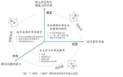 我们和教学团队反复调研行业需求、探索产教融合路径,从校企合作体制、制度建设顶层设计开始再思考,重构了“三方跨界、三位一体”的文化创意特色旅游人才培养模式。新的人才培养模式注重学生的文化自信力、国际竞争力和产品创新力培养,打破了传统的专业壁垒,充分体现了文化与旅游产业“跨界融合” 发展的新需求,建立与产业转型升级相匹配的高职旅游人才培养新定位。