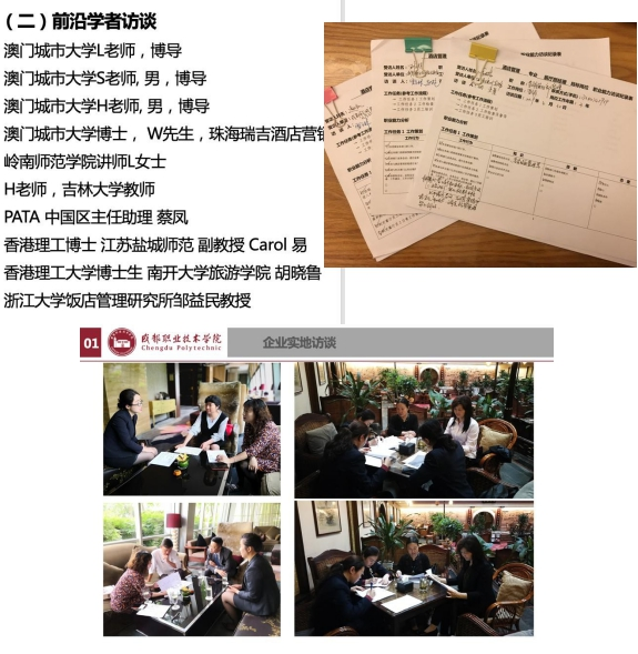 1. 为了了解行业需求,专业党小组走访了在成都的洲际酒店集团成都世纪城天堂洲际酒店群和三岔湖洲际、华住酒店集团、本土酒店品牌瑞城名人和明宇豪雅等企业。