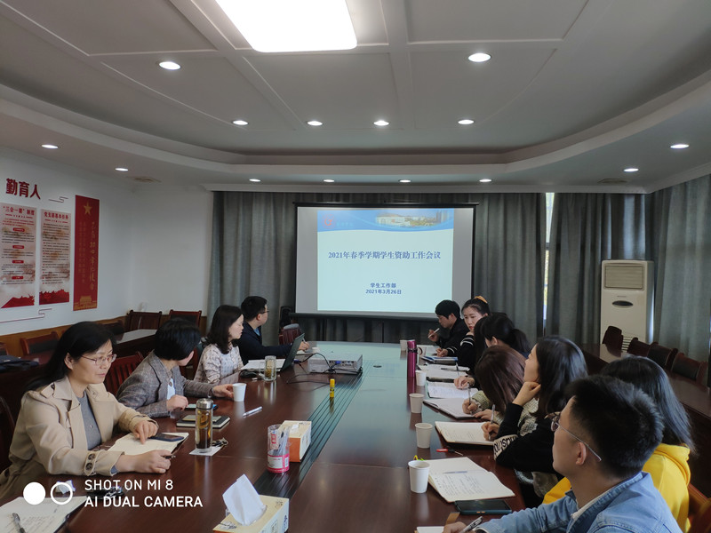 3月26日下午,2021年春季学期学生资助工作会议在学工部会议室召开。学工部副部长华紫武、郭凤英,学生资助管理中心主任朱春花以及二级学院资助工作联络员参加会议。会议由朱春花主持。