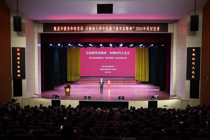 9月10日,我校与隆昌市联合举办的优秀教师代表“教育家精神”巡回宣讲会在我校艺术中心举行。隆昌市委常委、宣传部部长张弩,市人大常委会副主任曾茂祥,市政协副主席张泽锐,学校党委书记段永清,党委副书记、校长李达军,党委副书记、纪委书记尹显锋,党委委员、副校长王雪媛,党委委员、副校长陈文友及我校和隆昌市各学校教师代表参加宣讲会 。