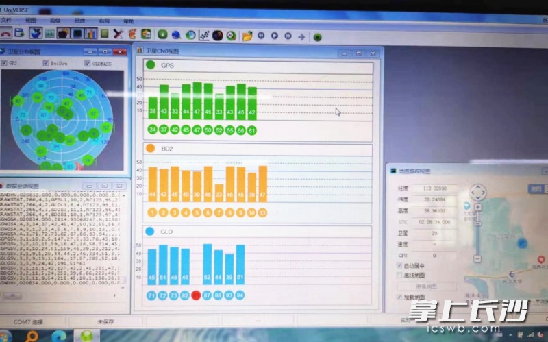 “基地有一套北斗建筑物形变监测仪器,可以对建筑物进行长时间的形变监测。”长沙学院北斗探梦科普基地负责人冯璐介绍,这套设备分为室外天线和室内数据处理系统两部分,排列在基地楼房天台上的天线按照固定的几何位置分布,可全天候采集高精度的卫星信号,并将信号传回基地的信息处理系统,收到信号后,信息处理中心的多台服务器和数据存储设备快速进行计算。“这些信号所传递的内容包括了天线与卫星之间的距离信息,已经精确到毫米级。如果天线阵列中有任何一个发生了位置的移动,它传回系统的信号也将发生变化,我们通过后续的分析处理,就能实时了解建筑物结构的变化情况。相对于传统人工对建筑物的定期检测,北斗系统具有更高的定位精度、更强的自动化程度和实时的观测能力,可以监测到建筑物上肉眼很难发现的安全隐患。”