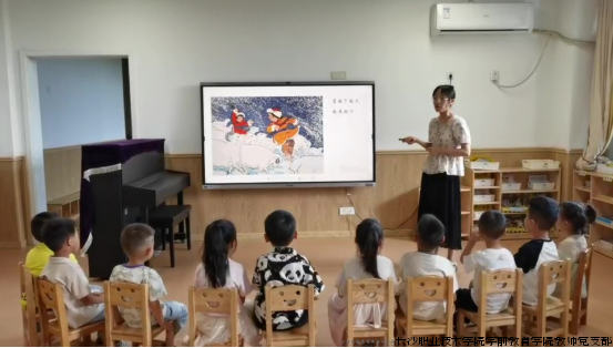 活动在长沙高新区幼儿园举行。任佳佳老师以生动的语言和丰富的情感,讲述了上世纪60年代发生在内蒙古达茂草原上的一段英雄事迹。故事的主人公是蒙古族少女龙梅和玉荣,她们为了保护生产队的羊群,冒着生命危险,与暴风雪顽强斗争了20多个小时。在极端恶劣的天气条件下,姐妹俩始终不离不弃,最终成功保护了羊群,但自己却严重冻伤,留下了终身残疾。