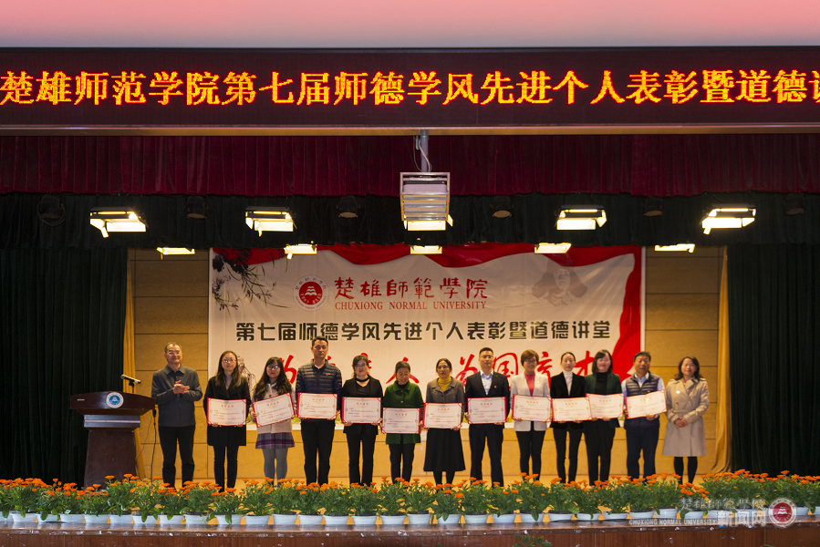 本次第七届师德学风先进个人表彰大会既是总结也是起点,在建设教师教育特色鲜明的高水平应用型大学的道路上,全校师生员工以习近平新时代中国特色社会主义思想为指导,全面贯彻落实党的十九大精神,深入学习贯彻习近平总书记考察云南重要讲话精神和关于教育工作、教师工作的重要论述,认真落实全国、全省教育大会精神,对标张桂梅等教育系统先进人物,以德立身、以德立学、以德施教、以德育德,落实立德树人根本任务,坚持“四个相统一”,争做“四有好老师”,当好学生的“四个引路人”。在推进文明校园创建和师德学风建设中发挥示范带头作用,为学校建成教师教育特色鲜明的高水平应用型大学而不懈奋斗!