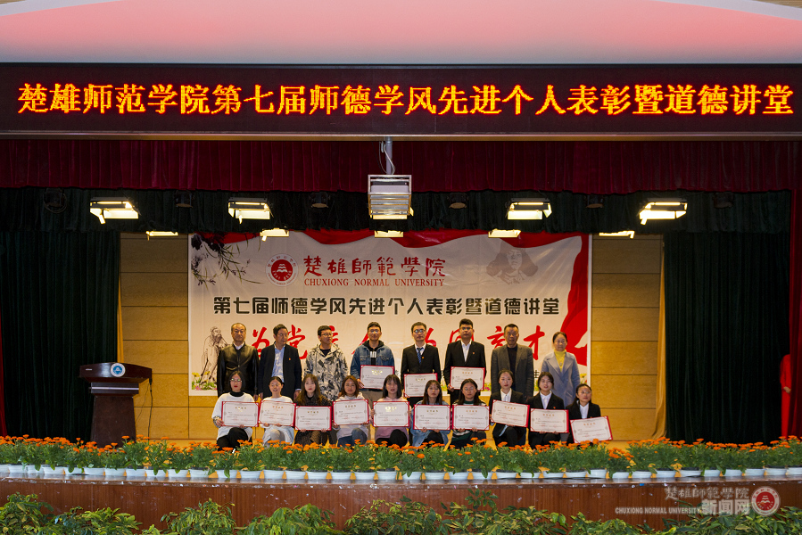 为深入学习贯彻习近平总书记关于教育的重要论述和全国教育大会精神,把立德树人的成效作为检验学校一切工作的根本标准,将社会主义核心价值观贯穿师德学风建设全过程,进一步加强和改进学校师德学风建设,充分发挥先进人物在学校教育教学工作和精神文明建设工作中的榜样、示范和鼓舞作用,营造出良好的教风学风和校园文化。12月14日下午,由学校精神文明建设指导委员会主办,化学与生命科学学院承办的2020年道德讲堂暨第七届师德学风先进个人表彰大会在雁塔校区上礼堂隆重举办。全体校领导、学校精神文明建设指导委员会成员单位负责人、受表彰的第七届师德学风先进个人、各二级学院党组织负责人以及师生代表400余人参加活动。
