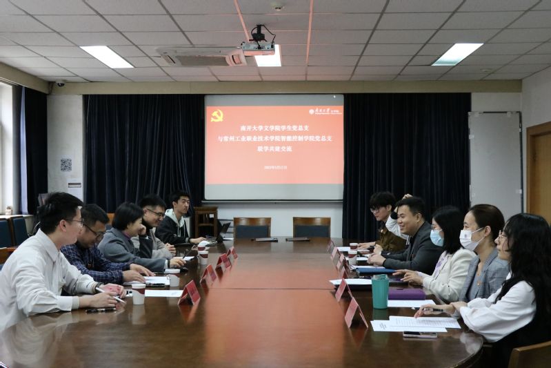 常州工业职业技术学院智能控制学院工匠党支部书记王骁俊,辅导员芮政、潘振宁。南开大学文学院党委专职组织员王琪,辅导员、本科生党支部书记高默涵、郝钰,研究生党支部书记邓琰秋,学生党员代表阎瑞泽出席联学共建活动,南开大学文学院研究生党支部书记赵可欣陪同参观。