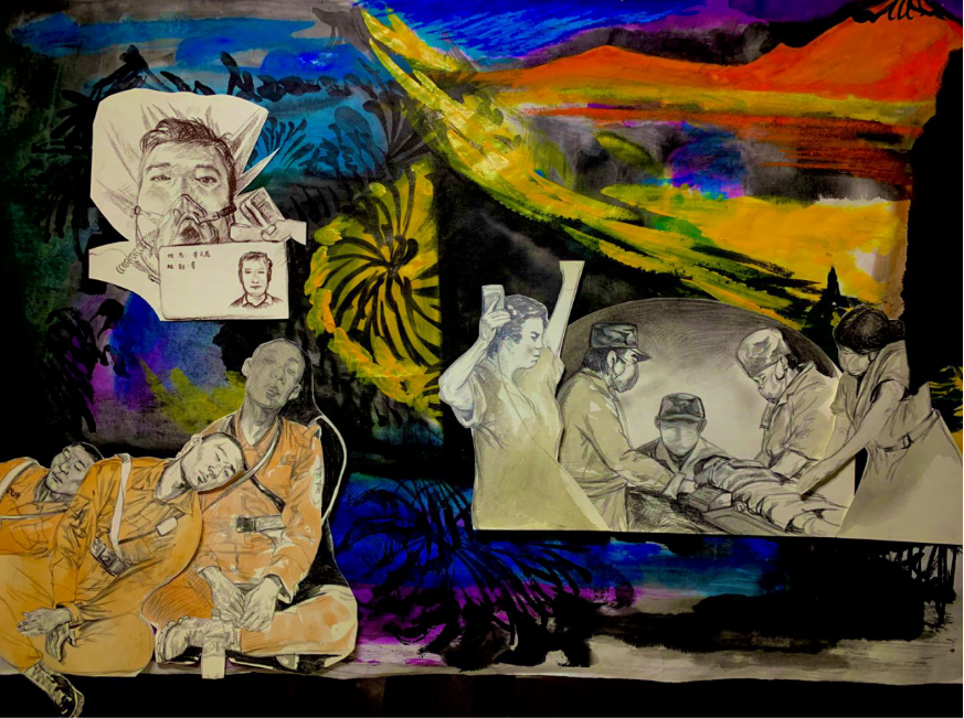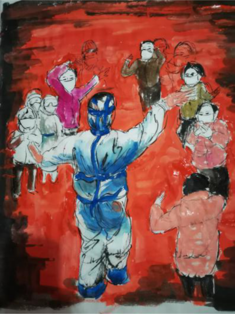 由于疫情期间,我们只能在家里上综合材料这段课程。这段课程中,前三个星期邓老师让我们尝试各材料进行创作,激发我们的想象,运用各种材料,学习老师们怎么创作一幅综合材料作品。在最后一周,我创作了几幅自己比较满意的作品,其中的一幅作品,是为了致敬这次疫情期间,奋斗在前线的白衣天使们。我所用的材料也是很丰富的,如:宣纸、素描纸、中国画颜料、马克笔、油画棒、毛线、鸡蛋壳等等。这次课程给我最大的收获就是,可以运用多种材料,创作出不同主题的综合材料绘画作品,吸收老师们的创作灵感,从而使自己的作品更加丰富。