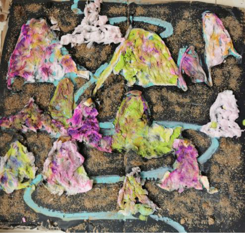 这段新颖的课程让我感觉到了很多个可能性,通过老师的讲解,我觉得综合材料就是用很多材料去创作出一副画,画面的创新会给人视觉效果很强的一种绘画。让画面产生不同的肌理效果,不同的感受,综合材料的应用给画面增添了很多的趣味性,各种材料都有其各自的特性,而我们就是用那种无意识的作画行为通过形式表达出来。综合材料在创作过程中会出现很多不可思议的视觉冲击力,所以最后呈现出来的画面都是意料之外的结果,画面会出现多种肌理,非常新颖。