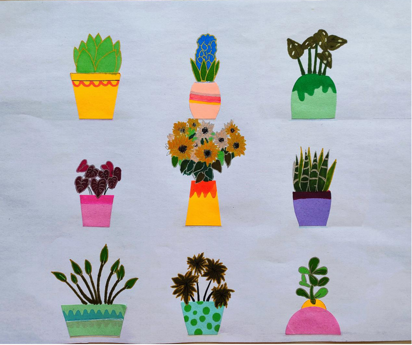 通过学习图形创意让我对图形又有了更深一步的理解,对于简单的图形并不是一味地用笔画,还可以用身边的各种东西进行拼贴,这短暂的几周我学到了很多新知识同时也发现了自己的不足,今后会更加努力学习!